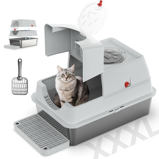 Extra Large Top-Entry Cat Litter Box with Lid – Dog-Proof, Odorless & Stainless Steel for Large Cats